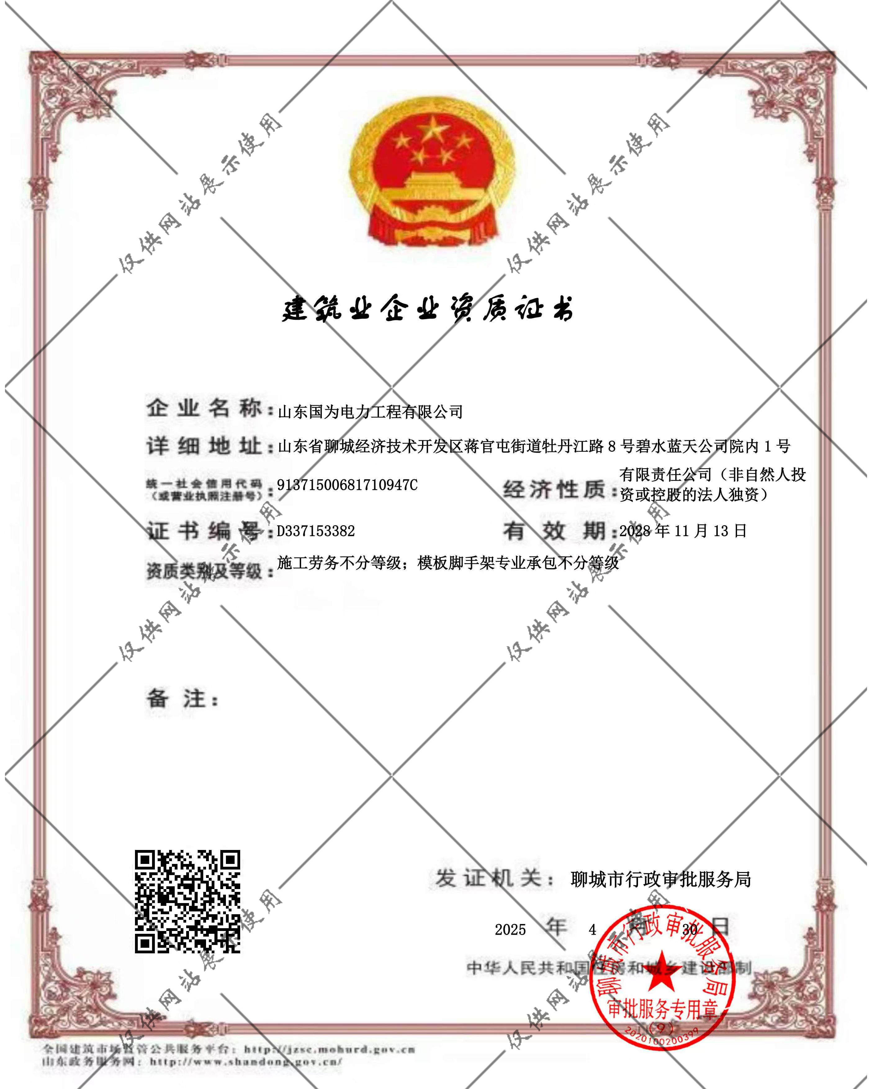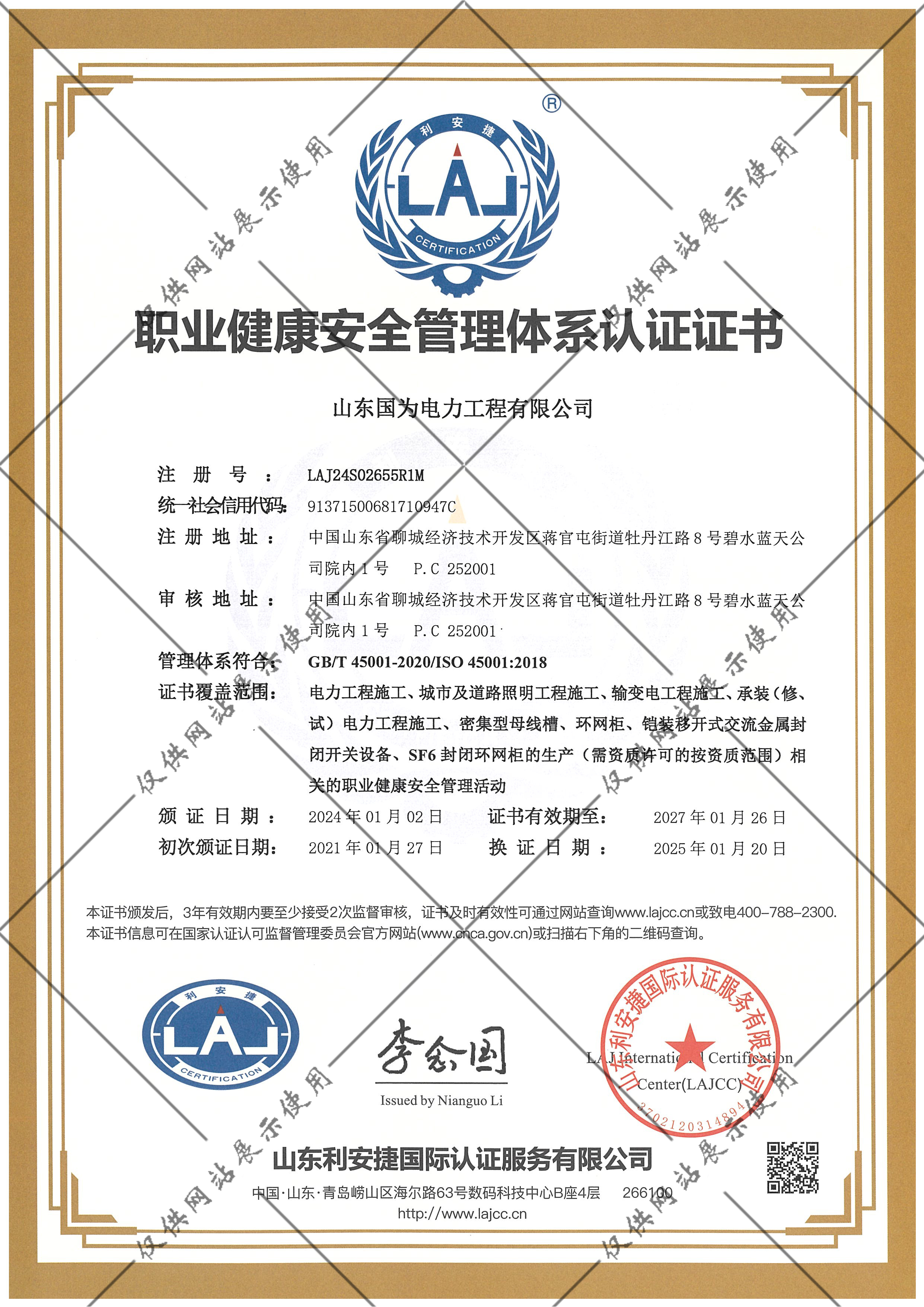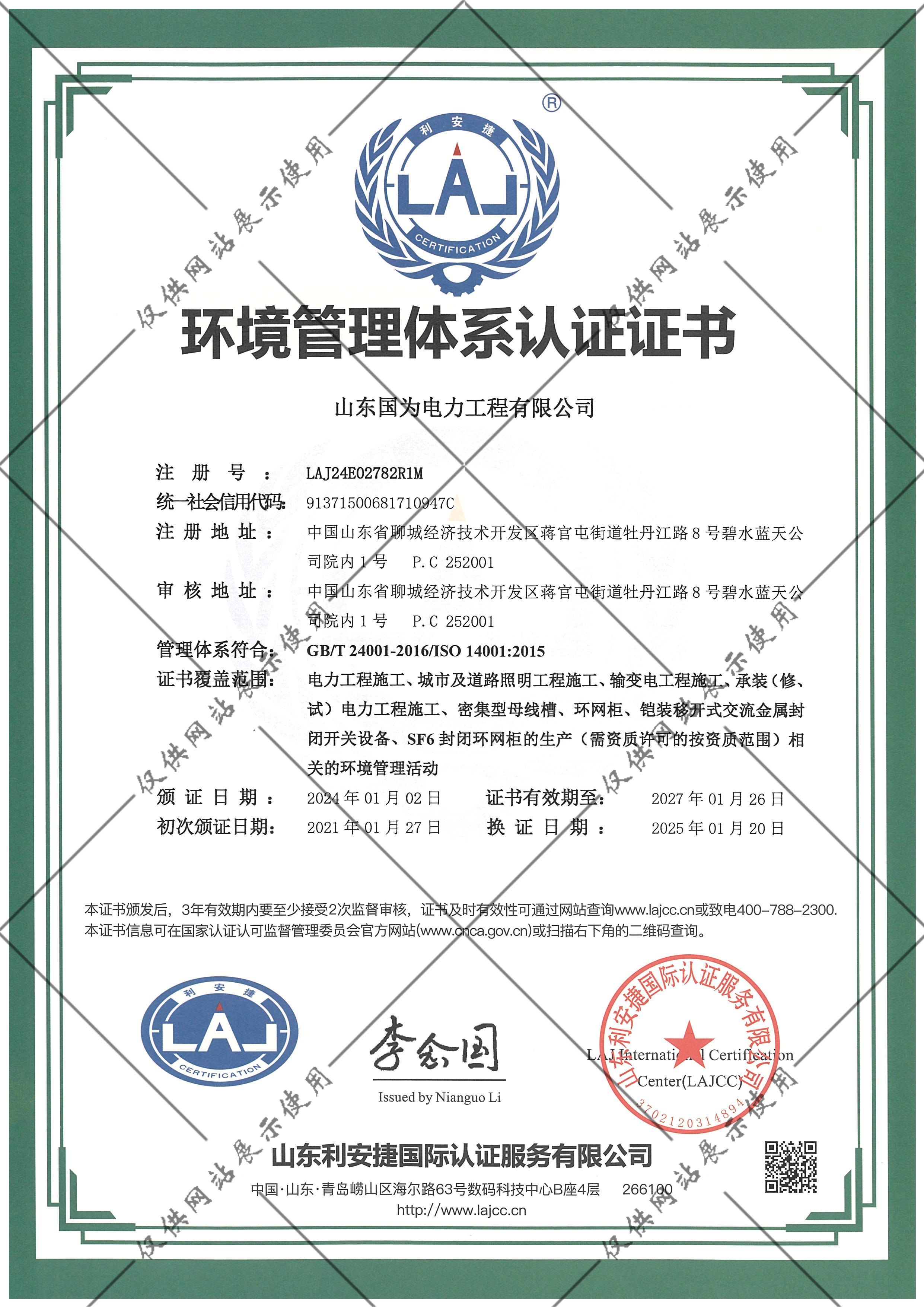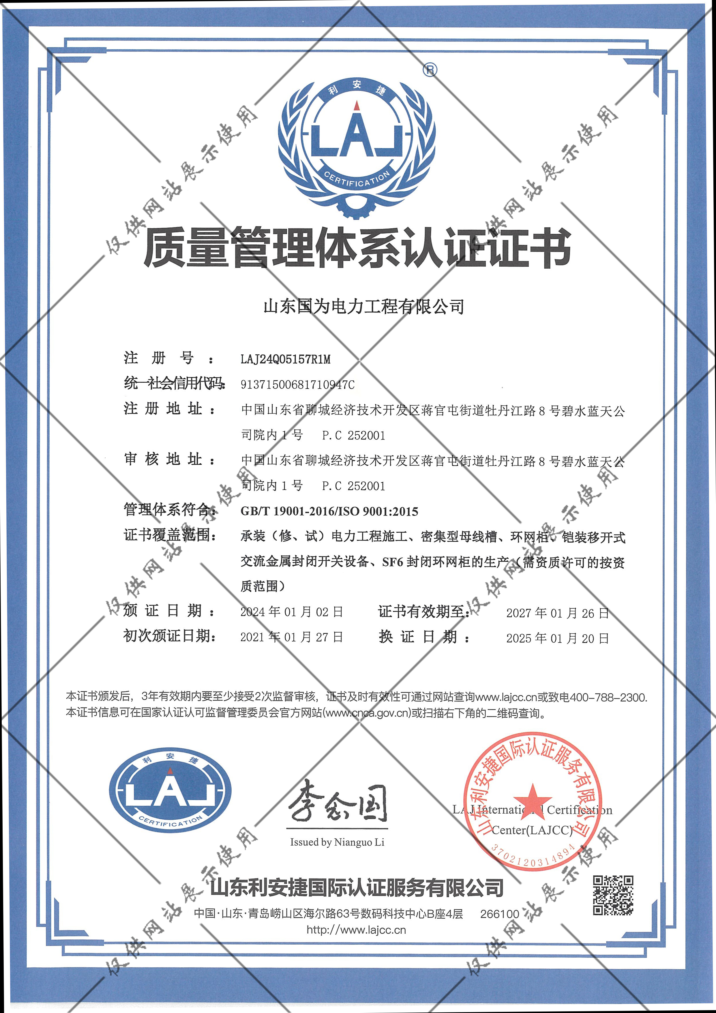 山东国为电力工程有限公司位山东省聊城经济技术开发区蒋官屯街道牡丹江路8号碧水蓝天公司院内1号,占地面积18余亩。于2008年11月05日在聊城市工商行政管理局注册成立,在公司发展壮大的10余年里,我们始终为客户提供好的产品和技术支持、健全的售后服务,我公司主要经营: